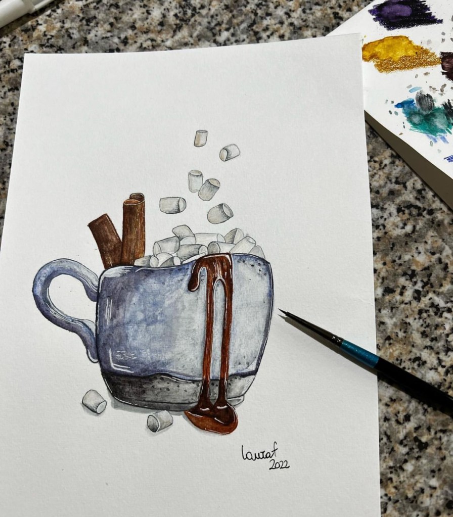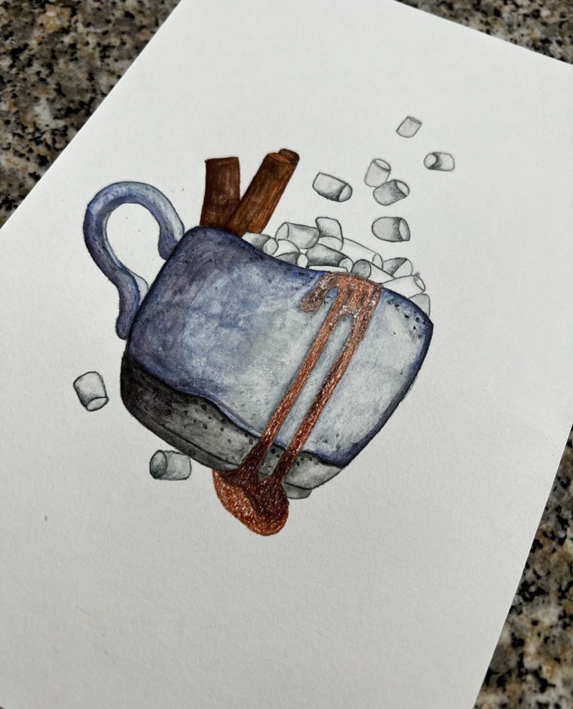 Esiste un cibo migliore per iniziare le fredde giornate del 2024, di una cioccolata calda? Dolce, avvolgente e leggermente speziata… e senza calorie che, dopo giorni di bagordi, è un dettaglio da non sottovalutare. Gli ingredienti per questa ricetta non saranno quindi cacao, latte e maizena, ma matite acquerellabili, pennelli e un foglio!