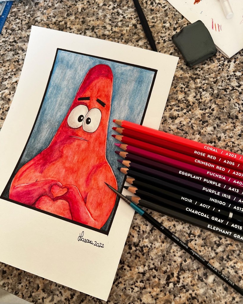 Laurafilippi.art va al mare, o meglio: va NEL mare. A Bikini Bottom in compagnia di simpatici amici. Lo avrete già capito, vi sto presentando il protagonista del disegno di oggi che vi voglio far vedere: la stella marina Patrick, coprotagonista della serie animata Spongebob Squarepants.